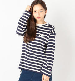 【送料無料】 幅広のボーダー柄がカジュアル感を加速する、Championコラボのトップスです。ユニセックスアイテムならではのほど良いルーズさがこなれ感をプラスします。柄になじむようカラーをあわせたロゴもポイントです。 ミューズ リファインド クローズ/MEW’S REFINED CLOTHES トップス|Tシャツ・カットソー
