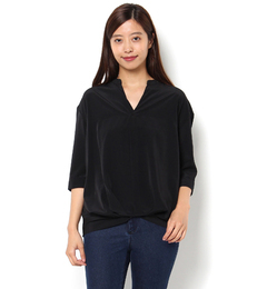 ライチ/ライチ [送料無料] Marquise de blanc ニット切替スキッパーブラウス