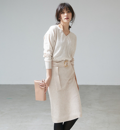 【送料無料】 スタイルアップ効果の高いフェミニンニットワンピーストップスとタイトスカートのセットアップ風に見えるニットワンピース。Iラインを強調したシルエットでスタイルアップ見えを叶えてくれます。付属ベルトでウエストをマークすれば、ゴールド(シルバー)のバックルがポイントに◎高感度高めのニットワンピースはお仕事から休日、12月のイベントシーンまで活躍します。model:H172・B80・W60・H85 着用サイズ:FREE カリテ/qualite qualite|ワンピース|ワンピース